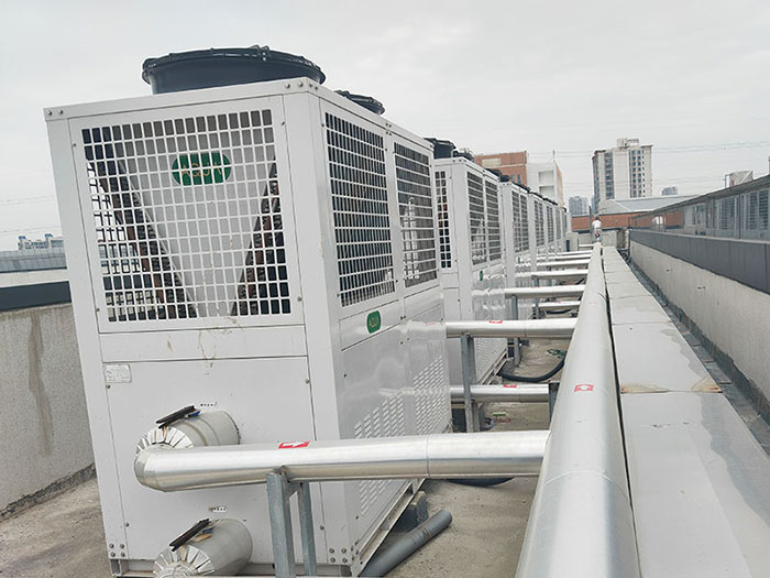 并采用低噪音壓縮機和風機設計機組運行寧靜;使用冷凝水隔離和蒸發器環氧涂層保護技術,比普通熱泵使用壽命更長,是目前學校宿舍、酒店、洗浴中心等場所的大、中、小熱水集中供應系統的解決方案。