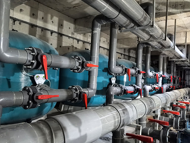 AQUA愛克過濾砂缸應用了新型濾料與過濾技術,過濾精度超高,能全面過濾碎屑雜質、膠狀絮狀物、懸浮狀顆粒,保持山東某小區泳池水質清澈透明。