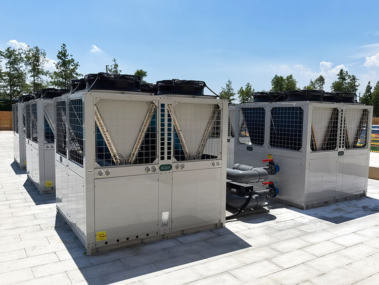 AQUA愛克空氣源熱泵生產廠家是高新技術企業,所打造的產品質量過硬、性能優秀。AQUA愛克空氣源泳池恒溫熱泵可從室外空氣中獲取源源不斷的免費熱量來加熱池水,制熱快、無污染、能耗小、更穩定,并且智能控溫不會忽冷忽熱,一年四季保證山東某小區泳池水溫適宜。