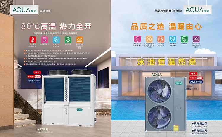 近年來,AQUA愛克空氣源熱泵憑借先進的技術水平、高效穩定的性能、可靠的質量保證,廣泛應用于了泳池恒溫除濕領域。AQUA愛克新發布的泳池變頻熱泵、高溫熱泵、地暖熱泵、落地式除濕機等新品泳池恒溫除濕設備,技術性能再次迭代升級。