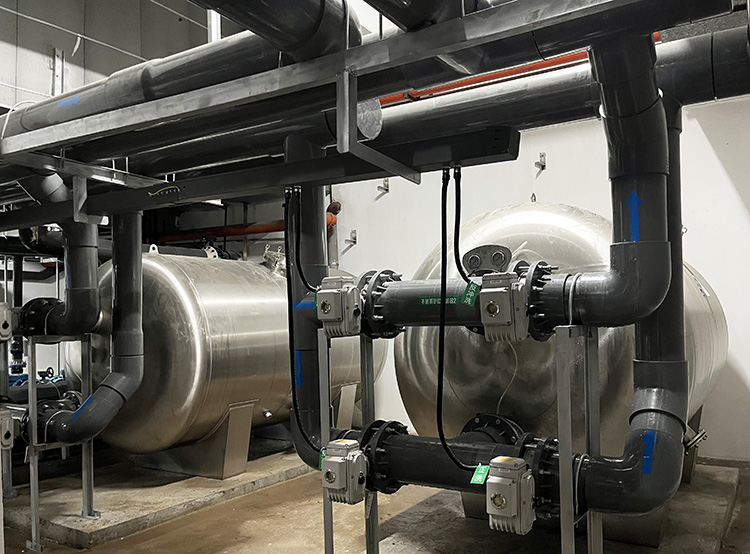 在過(guò)濾環(huán)節(jié),AQUA 愛(ài)克不銹鋼過(guò)濾砂缸成為該游泳館的“守護(hù)者”。這種砂缸采用優(yōu)質(zhì)不銹鋼材質(zhì),具有優(yōu)異的耐腐蝕性和耐用性,能夠經(jīng)受住嚴(yán)峻的機(jī)房環(huán)境。其選用天然石英砂作為過(guò)濾介質(zhì),能夠有效攔截泳池水中的細(xì)小顆粒、灰塵、細(xì)菌等雜質(zhì),經(jīng)過(guò)過(guò)濾后的水體更加純凈,為游泳者提供了健康安全的保障。同時(shí),該砂缸的反沖洗功能設(shè)計(jì)合理,操作簡(jiǎn)便,能夠輕松恢復(fù)過(guò)濾效果,延長(zhǎng)設(shè)備使用壽命,確保泳池水質(zhì)的長(zhǎng)期穩(wěn)定。