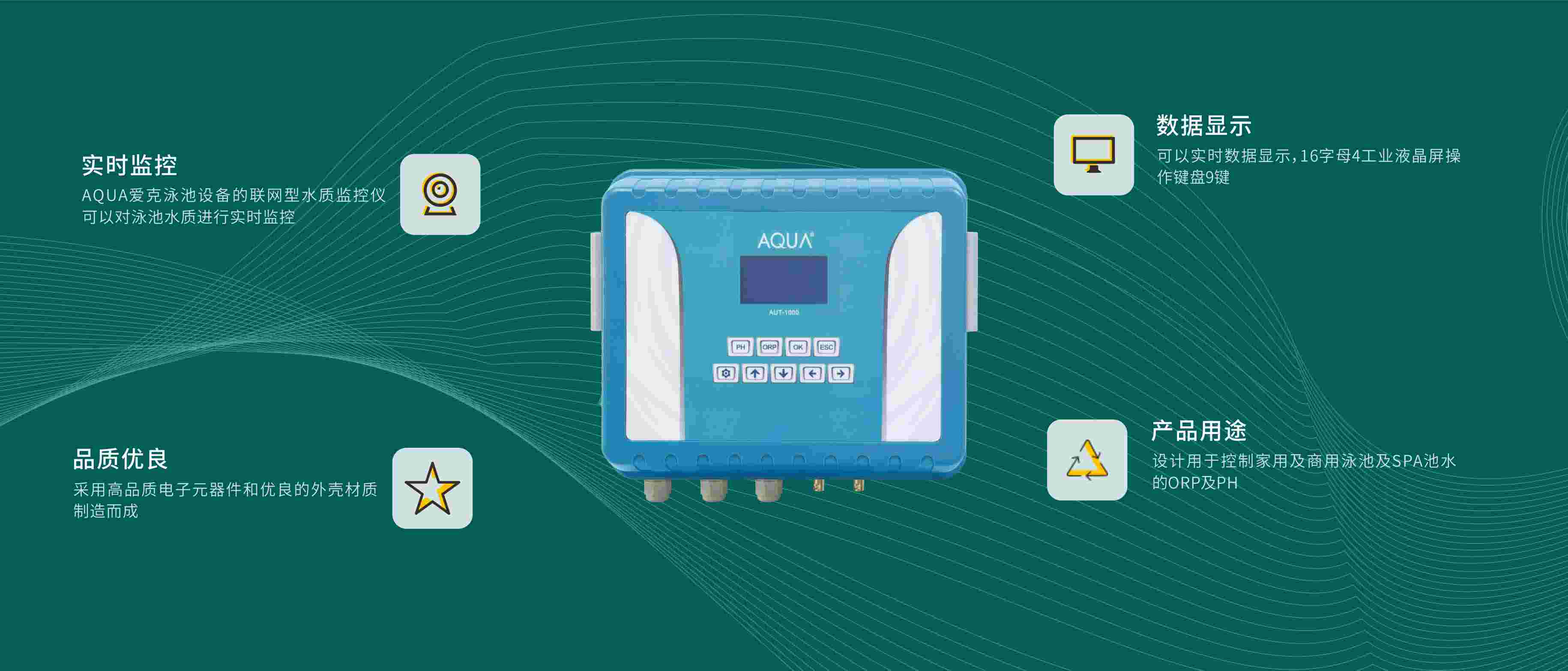 AQUA愛克泳池設(shè)備的?聯(lián)網(wǎng)型水質(zhì)監(jiān)控儀是一款泳池水質(zhì)監(jiān)控系統(tǒng),設(shè)計用于控制家用及商用泳池及SPA池水的ORP及PH值。
