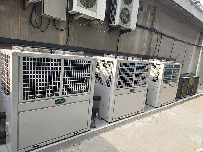 AQUA愛克空氣源熱水熱泵,主機系統完全焊接密封,采用低噪音壓縮機和風機設計,機組運行寧靜;并使用冷凝水隔離和蒸發器環氧涂層保護技術,比普通熱泵使用壽命更長。同時內置熱水水流保護,壓機排氣溫度保護,高/低壓力保護、壓縮機過電流、電源錯缺相保護、水系統防凍結保護,自動除霜、自動負荷調節等多重保護,是目前學校宿舍、酒店、洗浴中心等場所的大、中、小熱水解決方案。