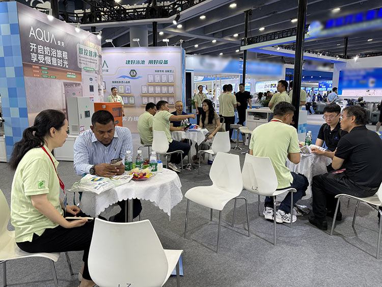 展會(huì)期間,AQUA 愛克的展位前人潮涌動(dòng),來自國(guó)內(nèi)外的廣大客戶紛紛駐足參觀、咨詢交流。AQUA 愛克憑借多年來在泳池設(shè)備領(lǐng)域的深厚積累和不斷創(chuàng)新,以及完善的一站式系統(tǒng)解決方案和專業(yè)的市場(chǎng)服務(wù)團(tuán)隊(duì),獲得了眾多客戶認(rèn)可。全線產(chǎn)品通過了ISO9001、ISO14001、CE、UL、TUV等國(guó)內(nèi)與國(guó)際雙重品質(zhì)認(rèn)證,在全球范圍內(nèi)樹立了 10萬+標(biāo)桿案例,廣泛應(yīng)用于酒店、體育館、溫泉 SPA、學(xué)校等各類泳池項(xiàng)目,升級(jí)水環(huán)境,釋放品牌實(shí)力。